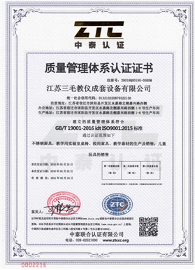 江蘇三毛教儀成套設備有限公司是一家集設計、生產、銷售、售后為一體的大型制造企業。坐落于風景秀麗的花木之鄉、全國經濟百強縣、國家級經濟開發區沭陽縣永嘉路。